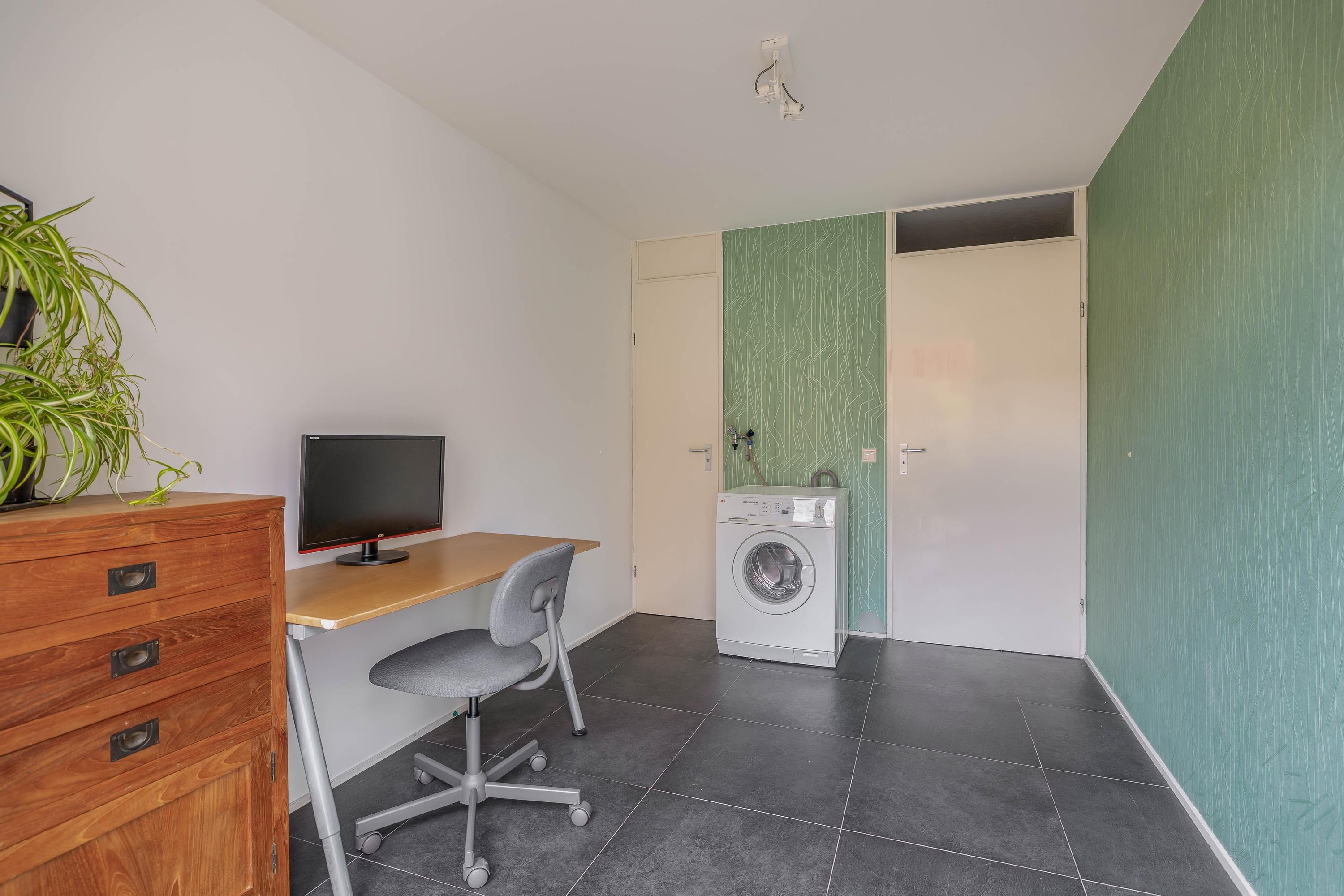 Bij binnenkomst in de hal vind je de meterkast en de trapopgang naar de woonverdiepingen. Aan de achterzijde van de woning ligt de tuinkamer, een multifunctionele ruimte die uitstekend gebruikt kan worden als werkplek, hobbyruimte of extra zitkamer. In deze ruimte is ook een handige bergkast aanwezig en de aansluiting voor de wasmachine. Via de openslaande deuren stap je zo de zonnige achtertuin in.