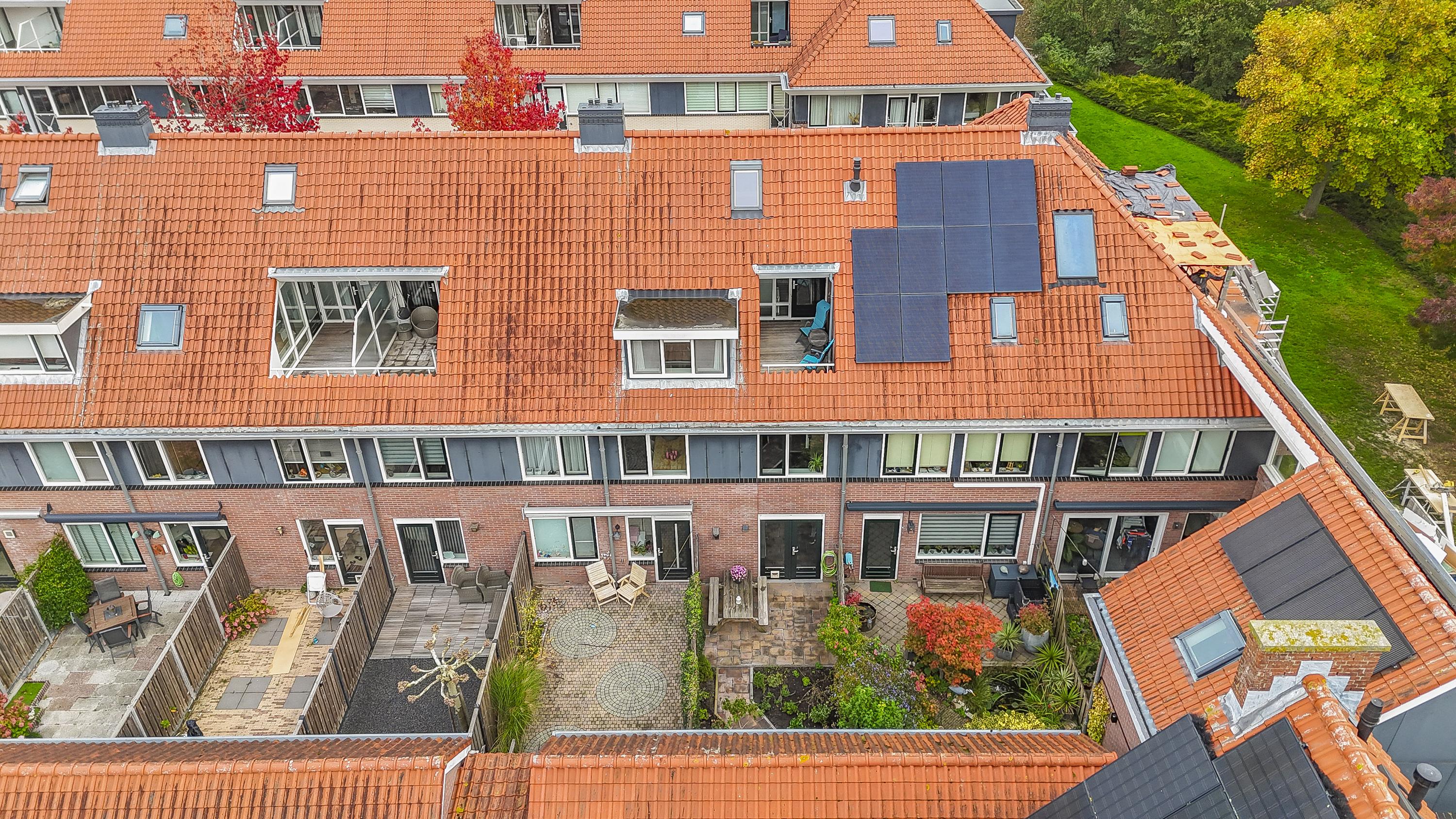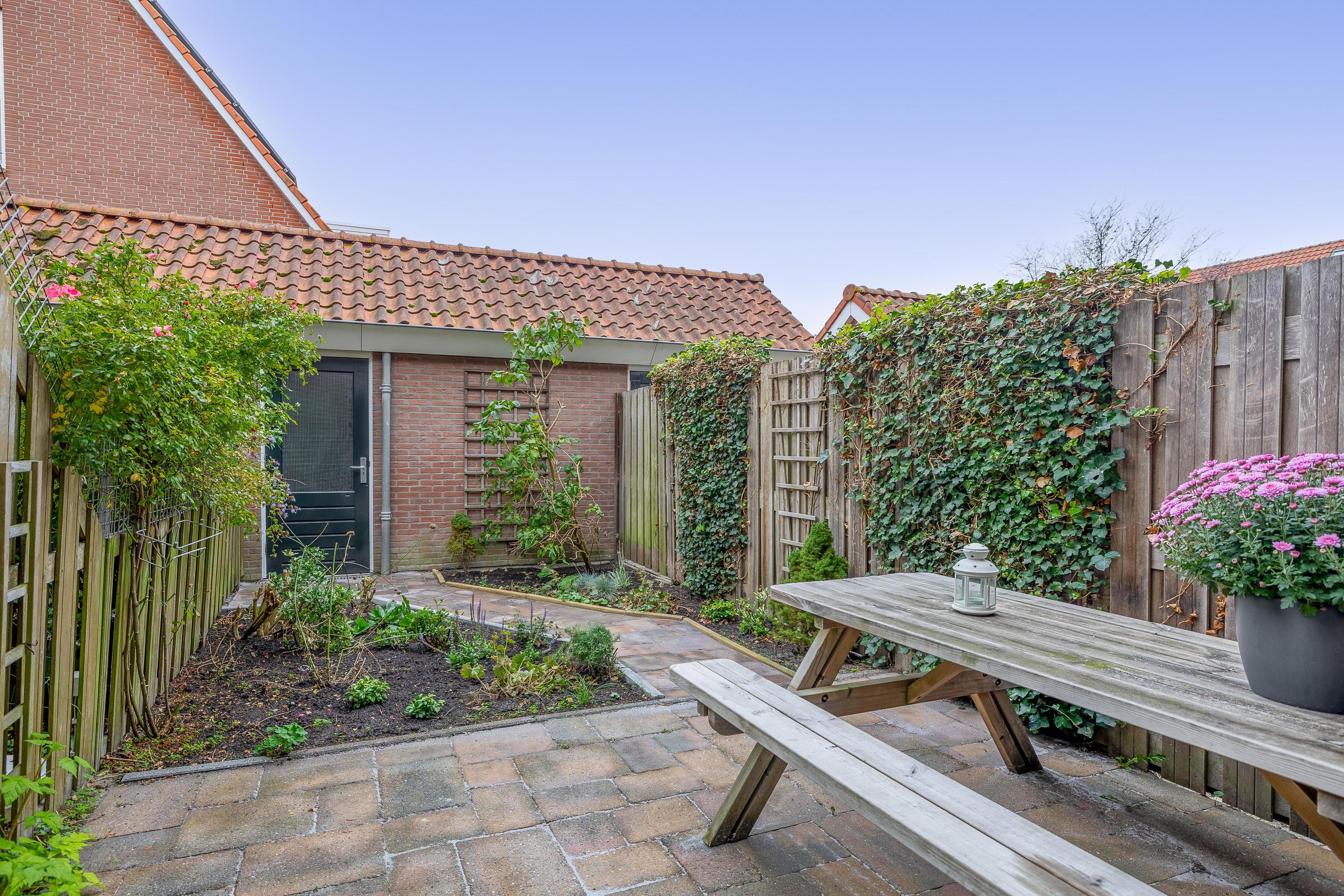 De achtertuin is deels bestraat en voorzien van houten schuttingen, waardoor je volop privacy hebt. Dankzij de gunstige ligging op het zuiden kun je hier de hele dag van de zon genieten. Achterin de tuin staat een berging met een achterdeur die toegang biedt tot de achtergelegen steeg. Daarnaast is er ruimte voor een gezellig terrasje waar je heerlijk kunt zitten.