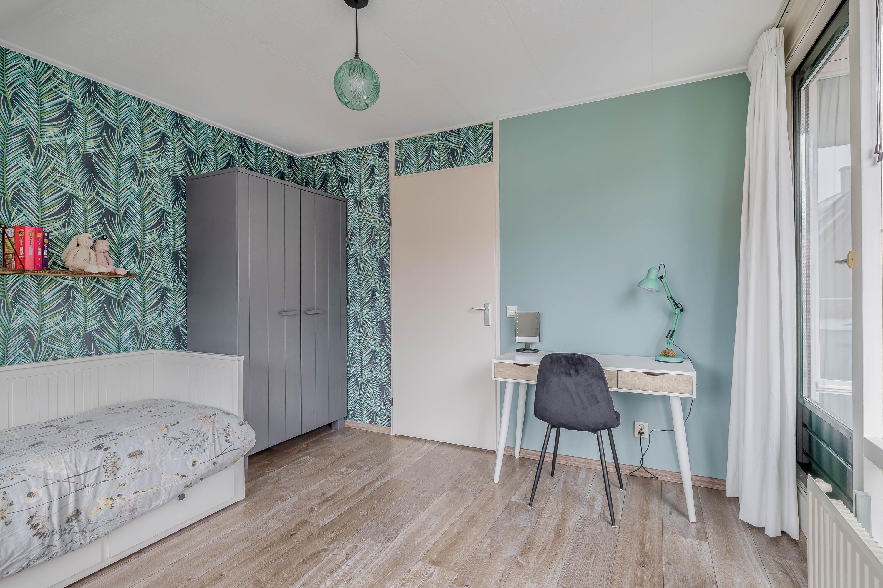 Via een vaste trap bereik je de 3e verdieping, waar zich de derde slaapkamer bevindt. Deze kamer is voorzien van een groot dakraam, wat zorgt voor veel daglicht. Achter een luik in deze ruimte bevindt zich de stookruimte met de opstelling van de cv-combiketel (Nefit, 2016) en de mechaniche ventilatie box.