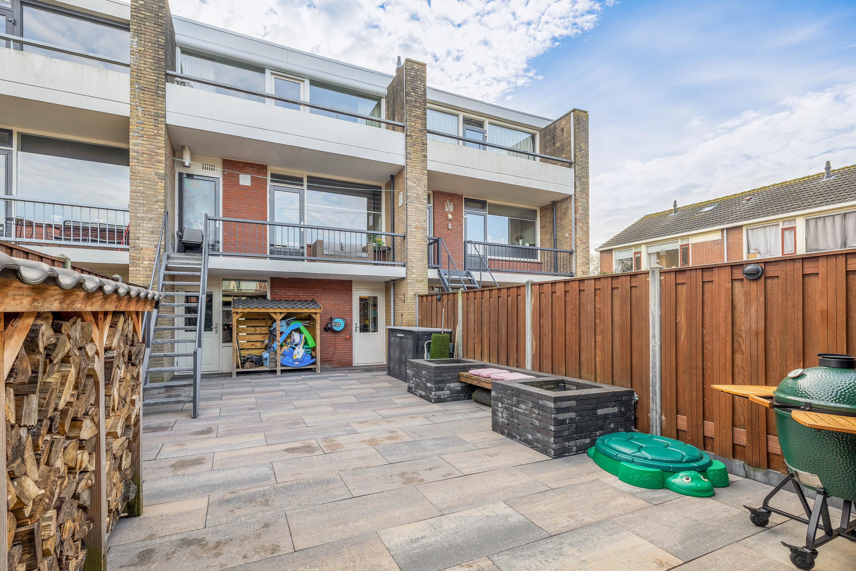 De voortuin netjes aangelegd en betegeld. De achtertuin is goed verzorgd en biedt een fijne combinatie van functionaliteit en ontspanning. De tuin is voorzien van schuttingen en een sfeervolle veranda, voorzien van elektra.