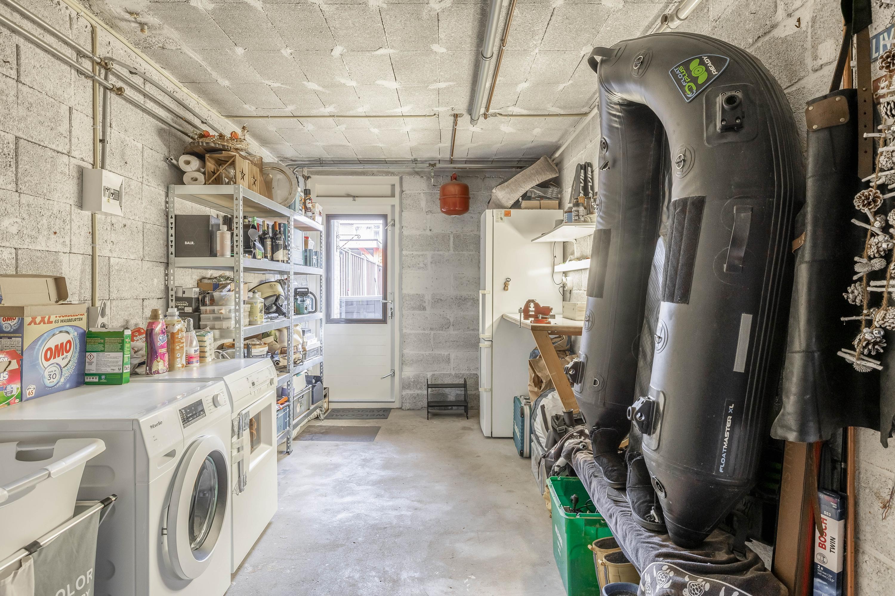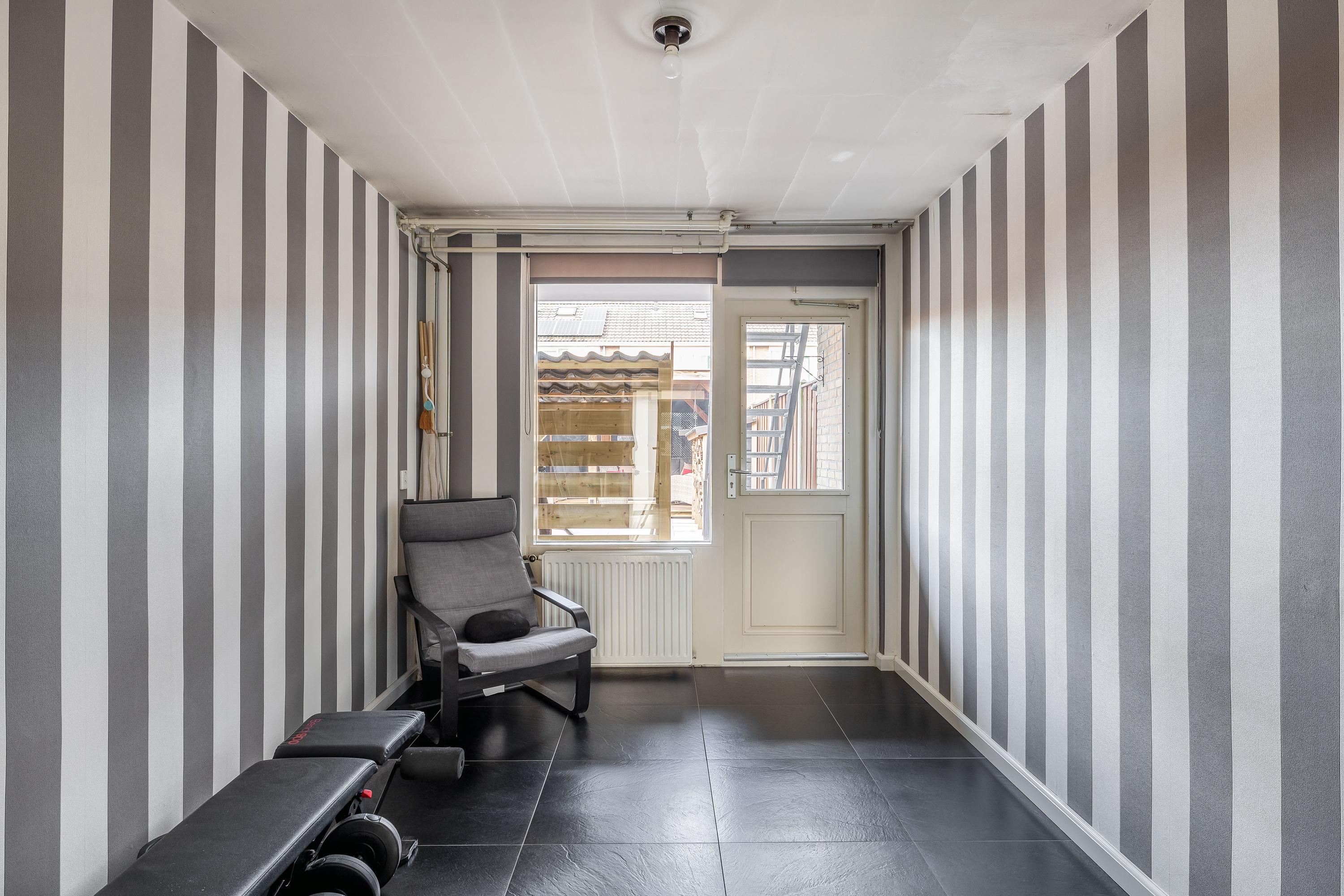 Je betreedt de woning via de entree, waar je de trap naar de eerste verdieping vindt. Vanuit de hal heb je toegang tot de tuinkamer/slaapkamer en de ruime garage. De tuinkamer/slaapkamer is praktisch ingedeeld en beschikt over een inbouwkast en een deur naar de achtertuin, waardoor deze ruimte multifunctioneel te gebruiken is. De aangrenzende garage is netjes afgewerkt en voorzien van water, elektra en verwarming. Ook hier is er een deur naar de achtertuin en een elektrische sectionaaldeur, waardoor de garage ideaal is voor parkeren, opslag of als extra werkruimte.