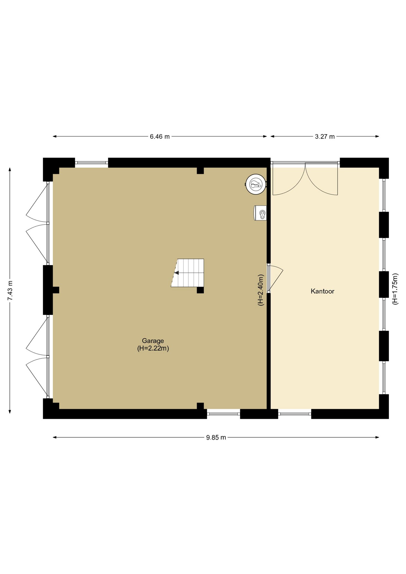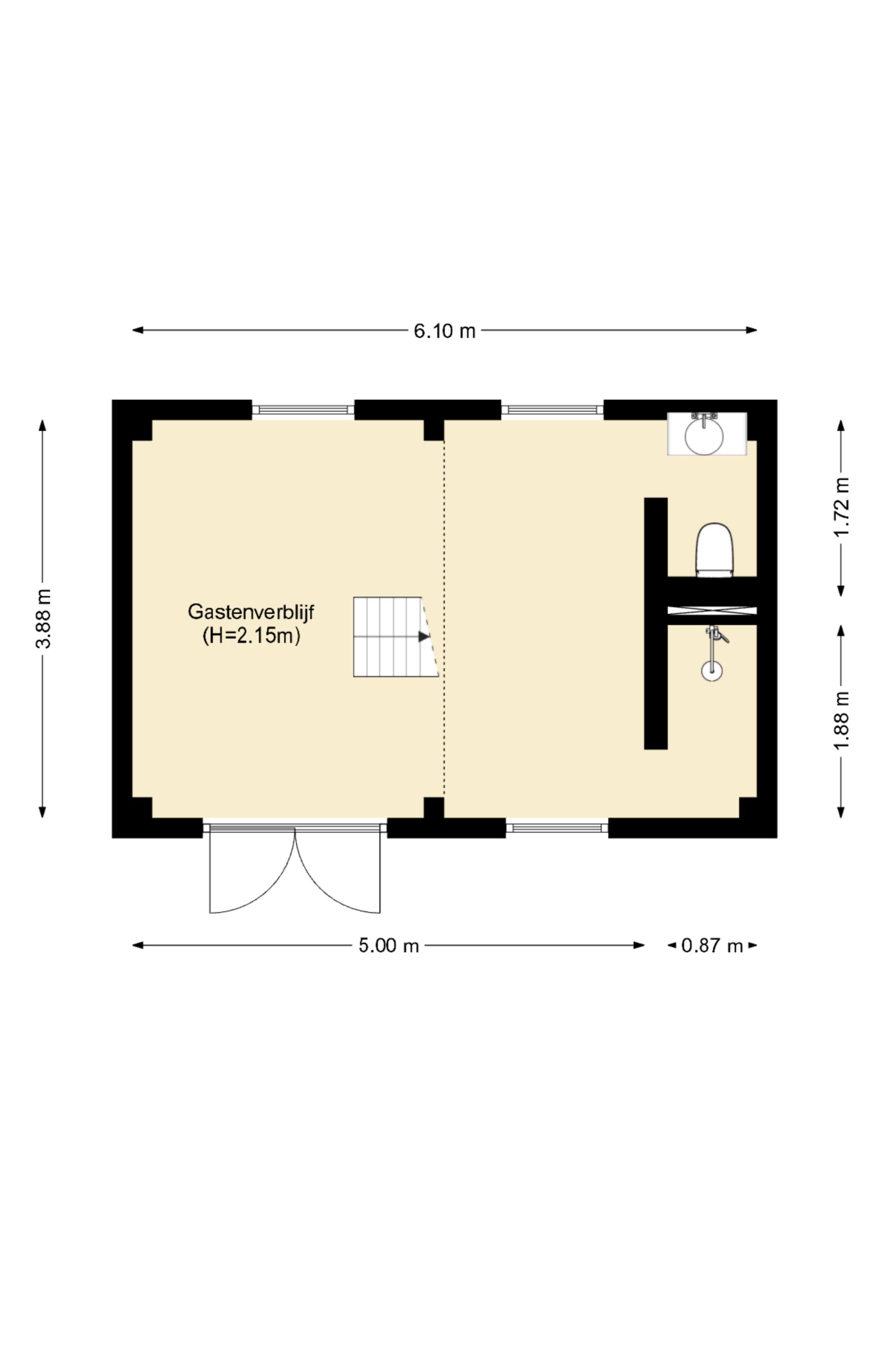 - Kantoor en gastenverblijf met een oppervlakte van totaal 48 m2.