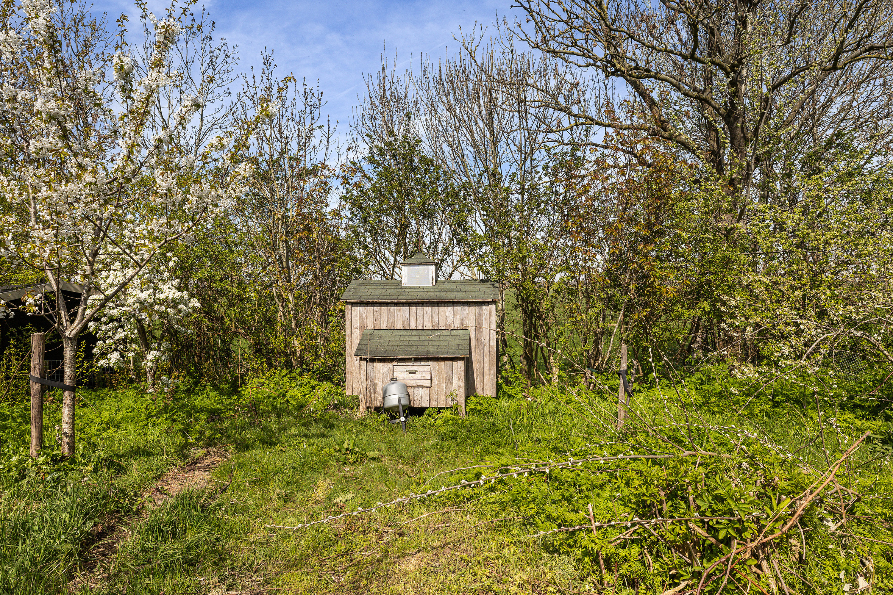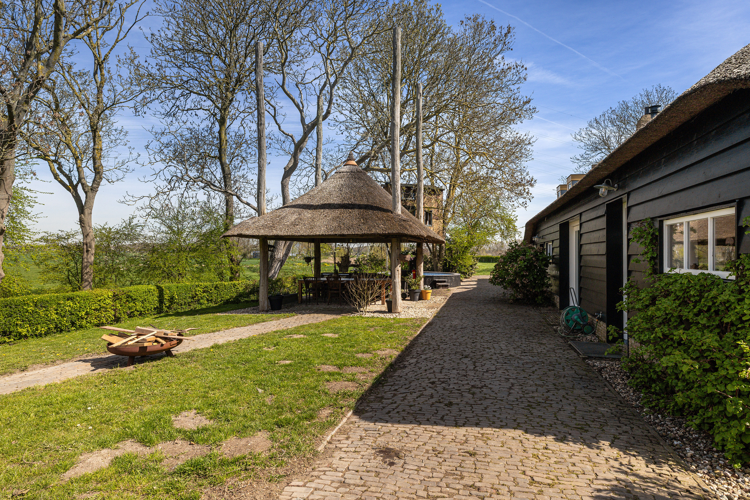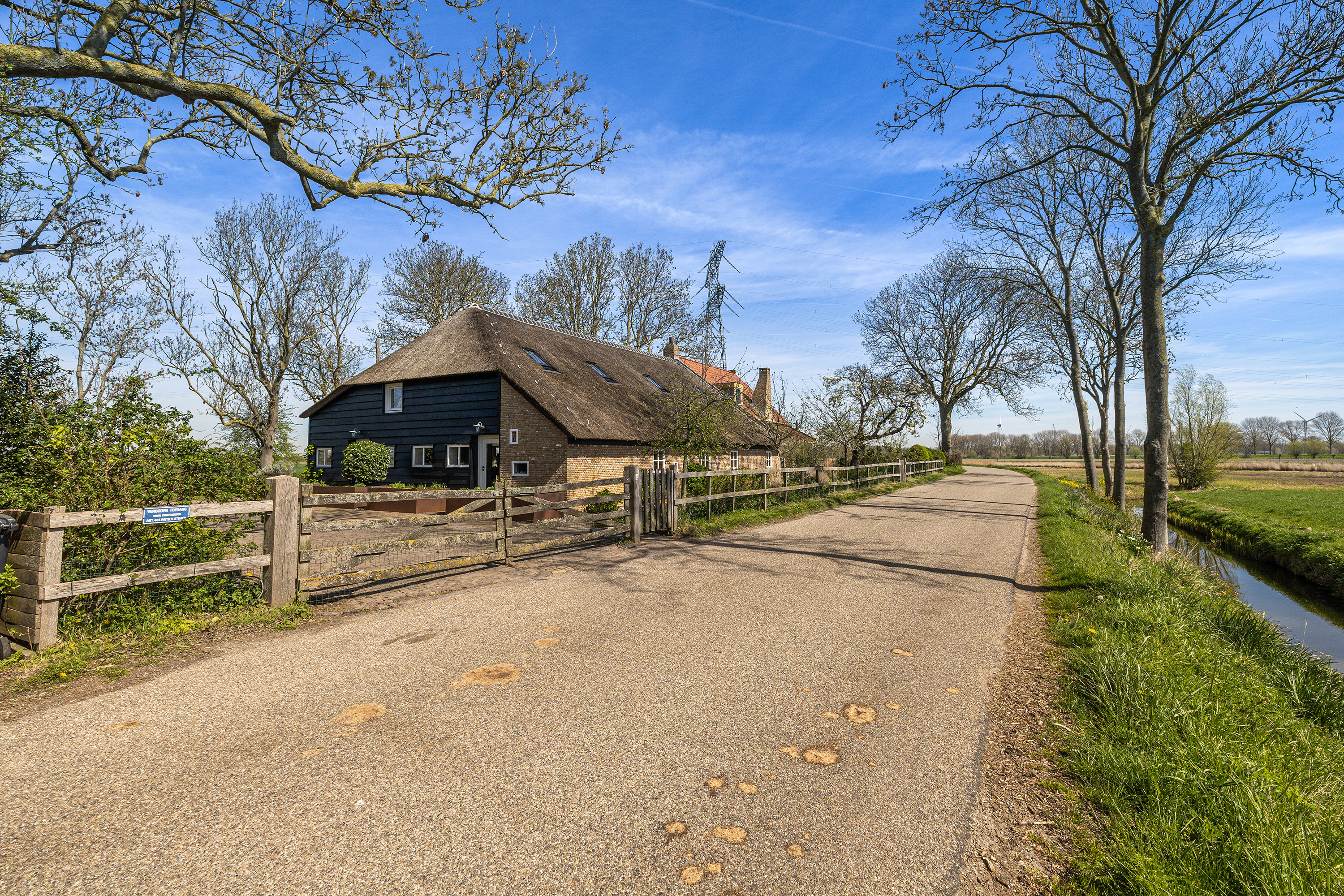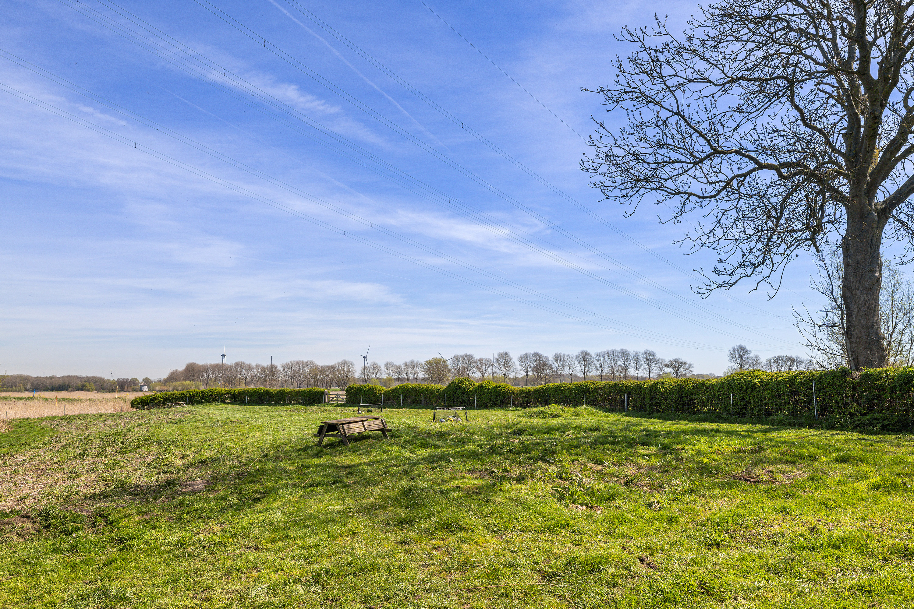 Het erf rondom de woning is met zorg ingericht en ademt rust en vrijheid. Op warme dagen vormt het verwarmde zwembad met een diepte van 1,5 meter een heerlijke plek om af te koelen, terwijl het rietgedekte prieel uitnodigt tot lange avonden buiten met vrij uitzicht over uitgestrekte polders. De tuin is volledig omsloten en bereikbaar via een elektrische houten poort, wat zorgt voor privacy en comfort. Voor kinderen is er bovendien een speelrijke boomhut die het erf een speels en levendig karakter geeft en het geheel nog meer tot een echt familieparadijs maakt. Op eigen terrein is er parkeergelegenheid voor meerdere auto's.