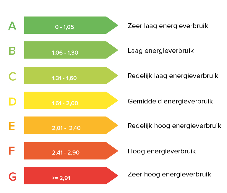 Het energielabel geeft aan of de woning veel of weinig energie verbruikt (de energieprestatie). Woningen met een A-label zijn het energiezuinigst. De minst zuinige woningen krijgen een G-label. Op het energielabel staat ook welke energiebesparende maatregelen in de woning mogelijk zijn. Denk aan dubbel glas plaatsen of isolatie van het dak.